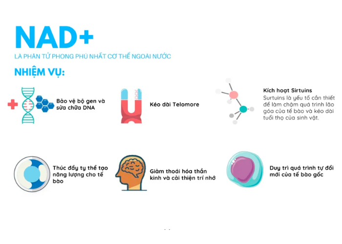 NAD, hay nicotinamide adenine dinucleotide, là một coenzyme tự nhiên có trong cơ thể và đóng vai trò quan trọng trong nhiều chức năng khác nhau như tăng trưởng và phục hồi cơ bắp, tăng trưởng tế bào và sửa chữa tổn thương. Tuy nhiên, mức độ NAD tự nhiên của cơ thể giảm dần theo thời gian do các yếu tố như căng thẳng, môi trường và sử dụng thuốc.