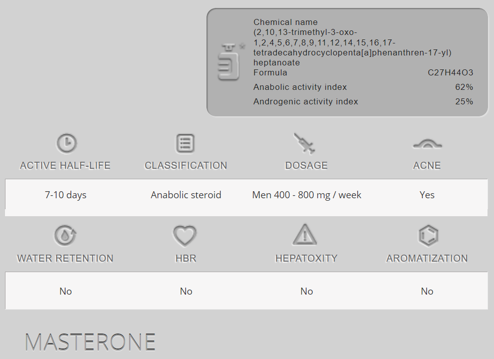 Về mặt sinh học, Masteron hoạt động giống như DHT vì nó là một dẫn xuất của DHT. Không có gì phải bàn cãi, tác dụng của Masteron sẽ được thể hiện một cách hiệu quả nhất trong một chu kỳ cắt nét. Tuy nhiên, để thực sự đánh giá cao tác dụng này, cá nhân cần phải cực kỳ gầy. Drostanolone không gây giữ nước và có tác dụng lợi tiểu vừa phải tương tự như stanozolol; điều này giúp cải thiện mật độ, đường nét và sự rõ nét của cơ bắp. Drostanolone cho phép đạt được tình trạng cơ bắp tốt nhất; điều này phần lớn nhờ vào hiệu ứng lipolytic của hợp chất. Thực tế cho thấy, một chu kỳ sử dụng drostanolone có thể giảm mỡ cơ thể từ 5-7%. Drostanolone được khuyến nghị cho các vận động viên điền kinh và những người tập thể hình muốn duy trì trong giới hạn trọng lượng của họ.