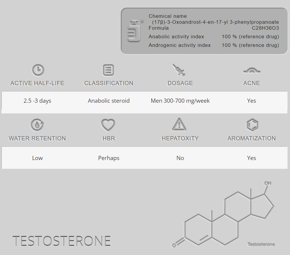 Testosteron được ưa chuộng cao bởi các vận động viên vì khả năng tăng cường mạnh mẽ cả về cơ bắp và sức mạnh. Là một hormone tự nhiên, nó vẫn là steroid tăng cơ phổ biến nhất và thường được sử dụng làm cơ sở cho tất cả các chu kỳ và tổ hợp.